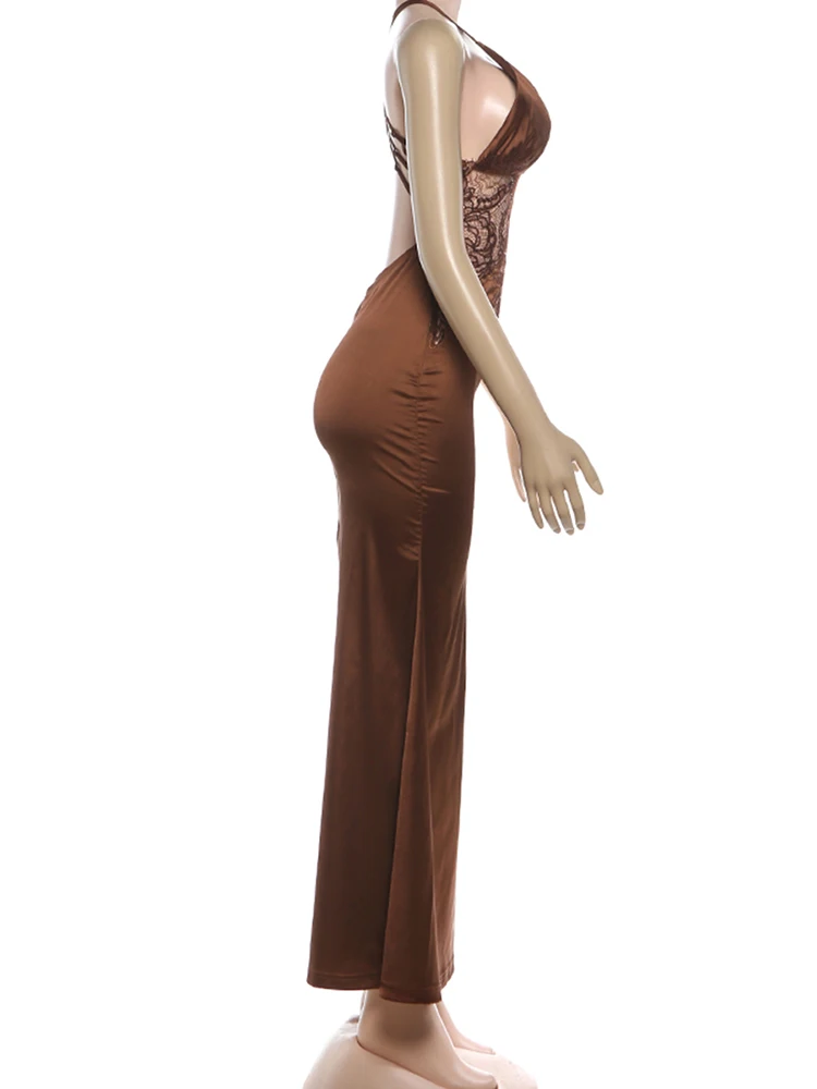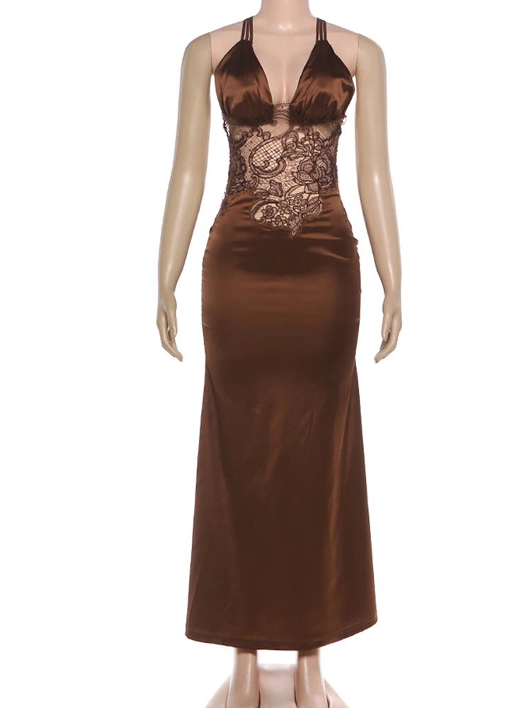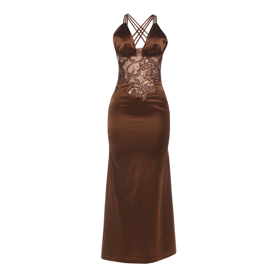 Backless Stain Deep V-Neck Jacquard Patchwork Bandage Peach Hip Bodycon Dress