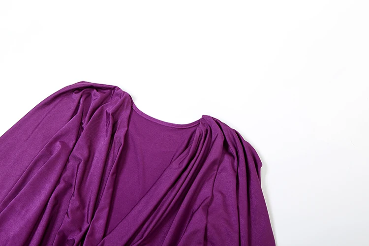 -Elegant Classic Satin Deep V-Neck Swing Long Sleeve Bodycon Dress