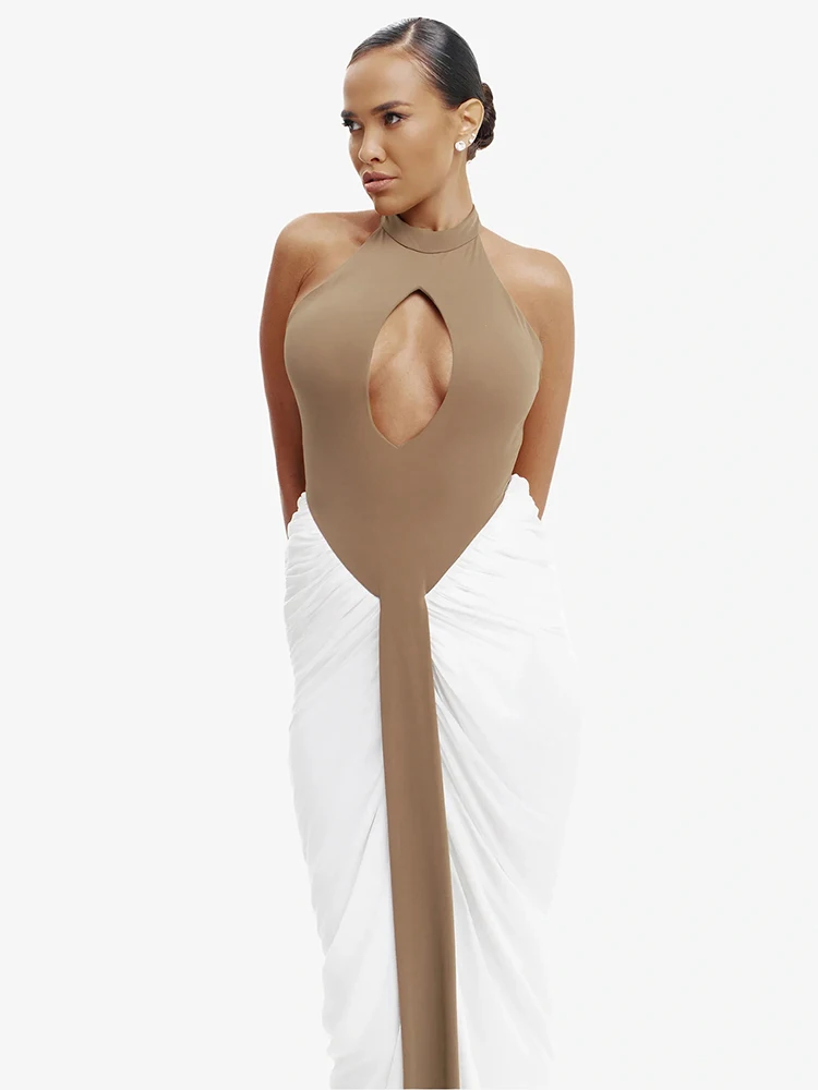 ` Y2K Backless Halter Split Ruched Stretchy Hollow Dress – Slaygurl Fashion