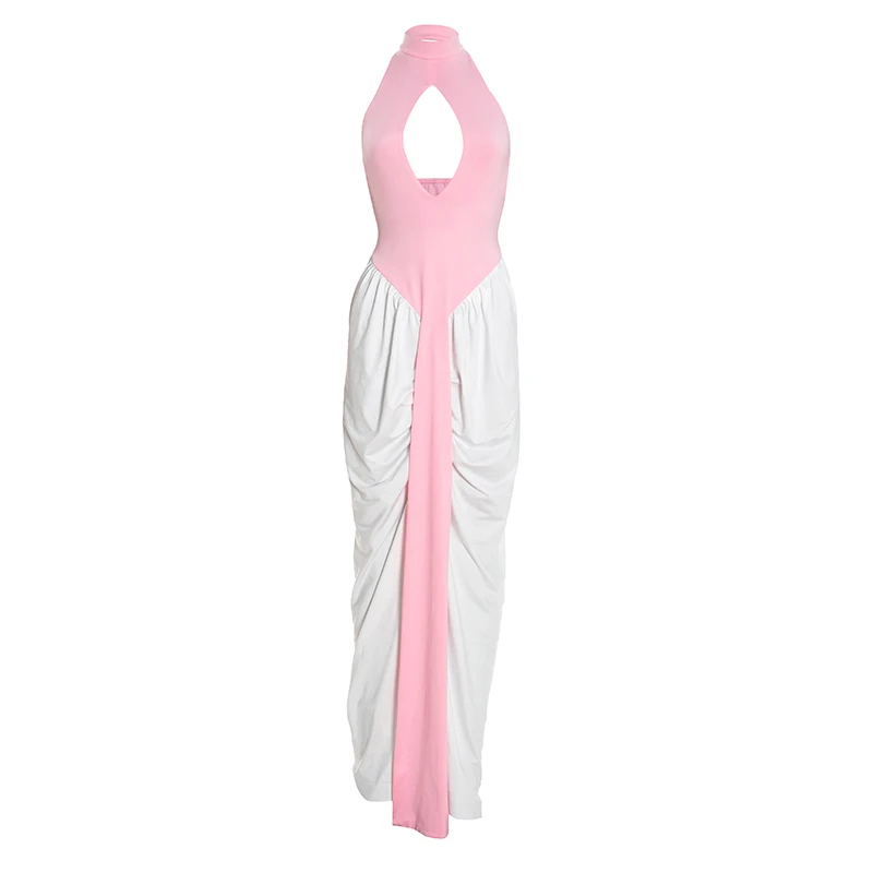 Y2K Backless Halter Split Ruched Stretchy Hollow Dress
