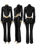 This faux leather two piece co-ord set creates a bold, sculpted silhouette while keeping a clean, minimal finish. The matching jacket and flared trousers give instant “put together” energy — no styling stress needed.
